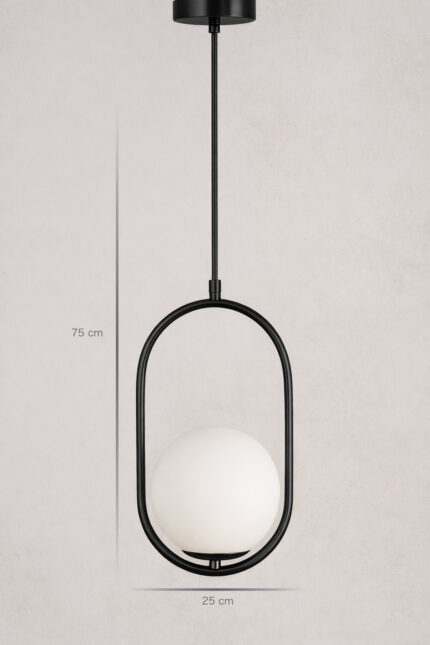 Jakarda Tekli Top Camlı Siyah Sarkıt Avize