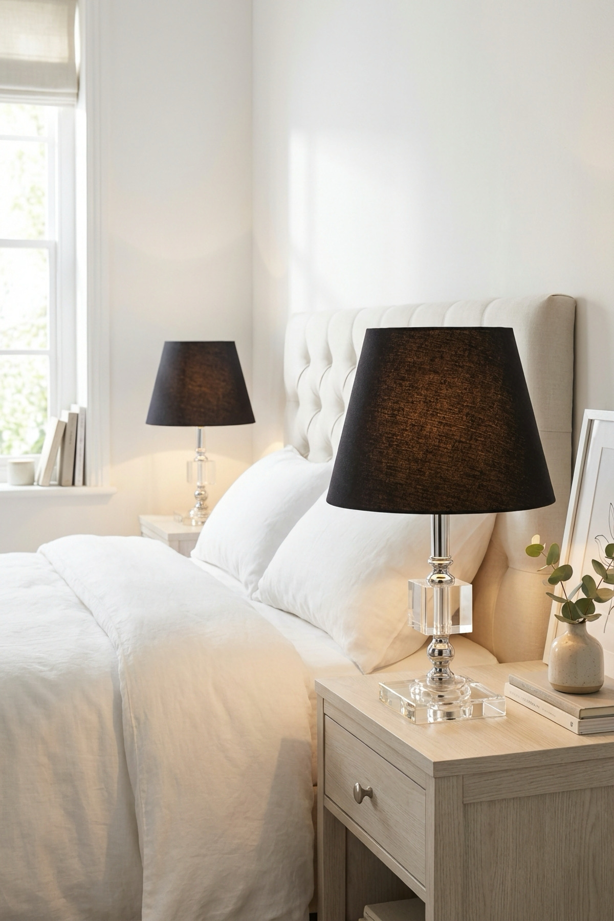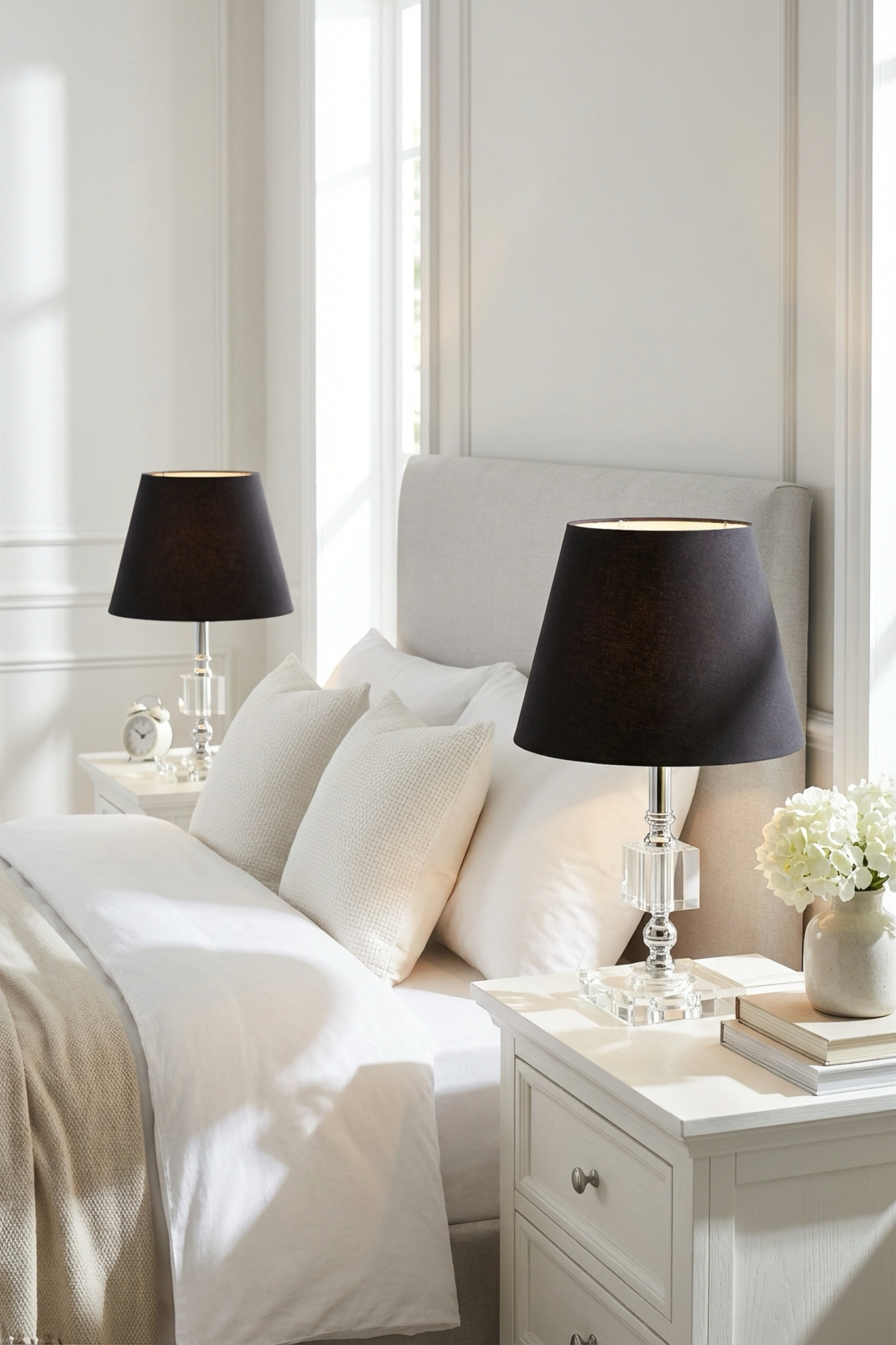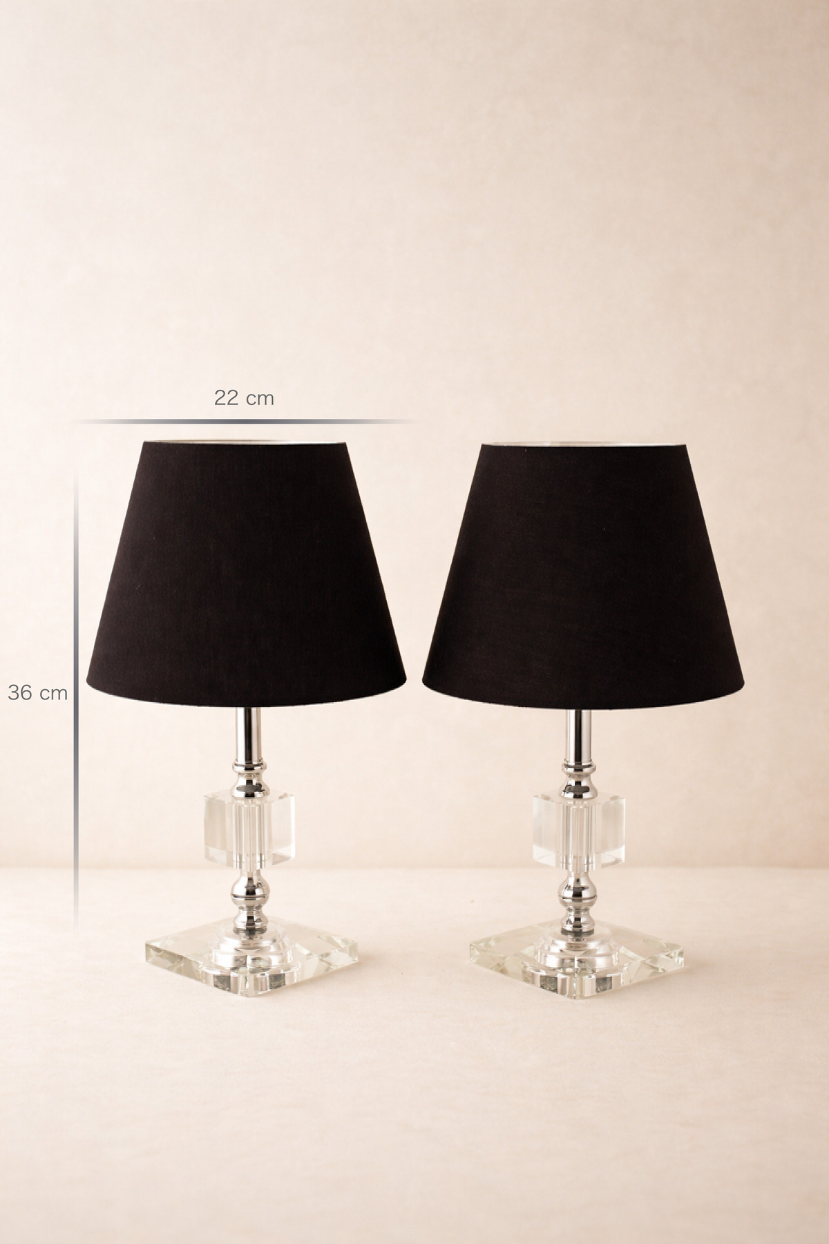 Akife Çift Gümüş-Siyah Kristal Abaju