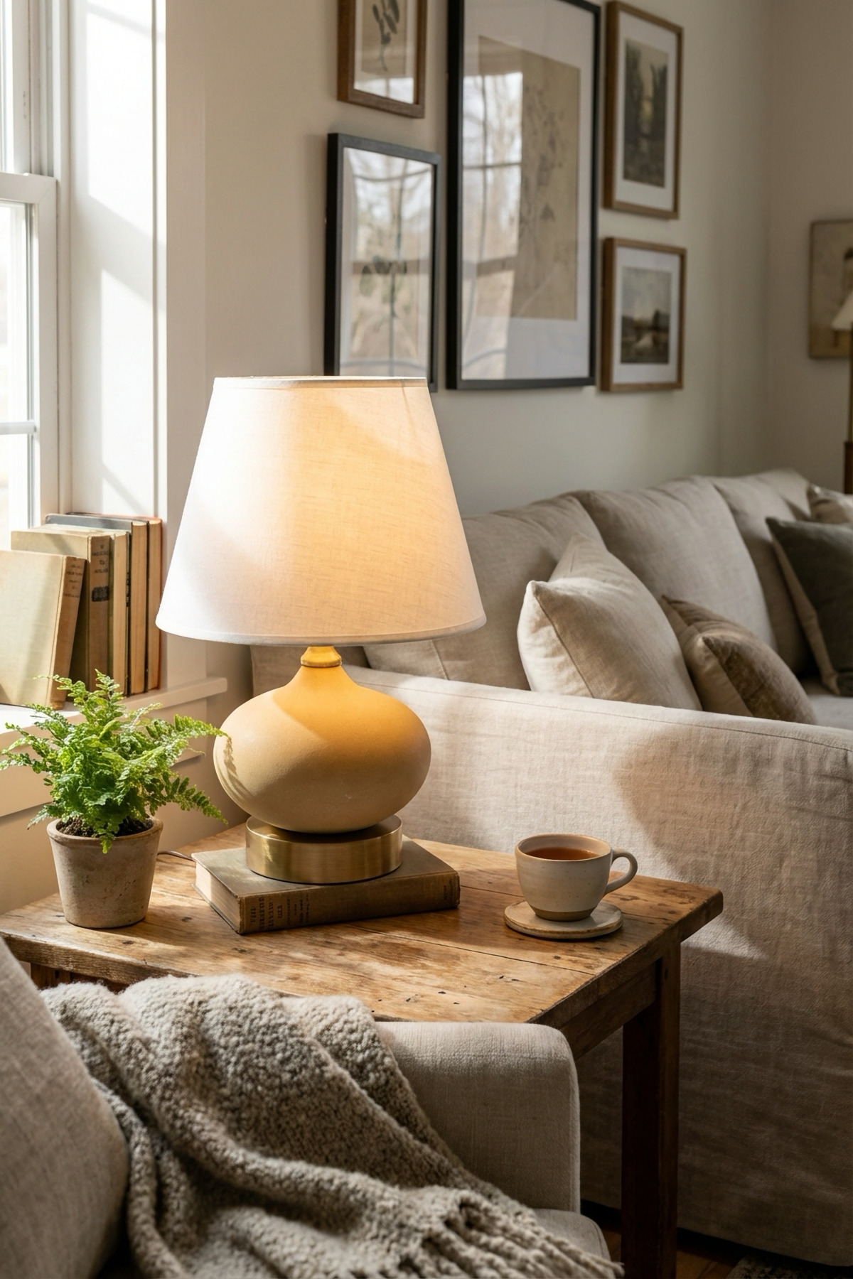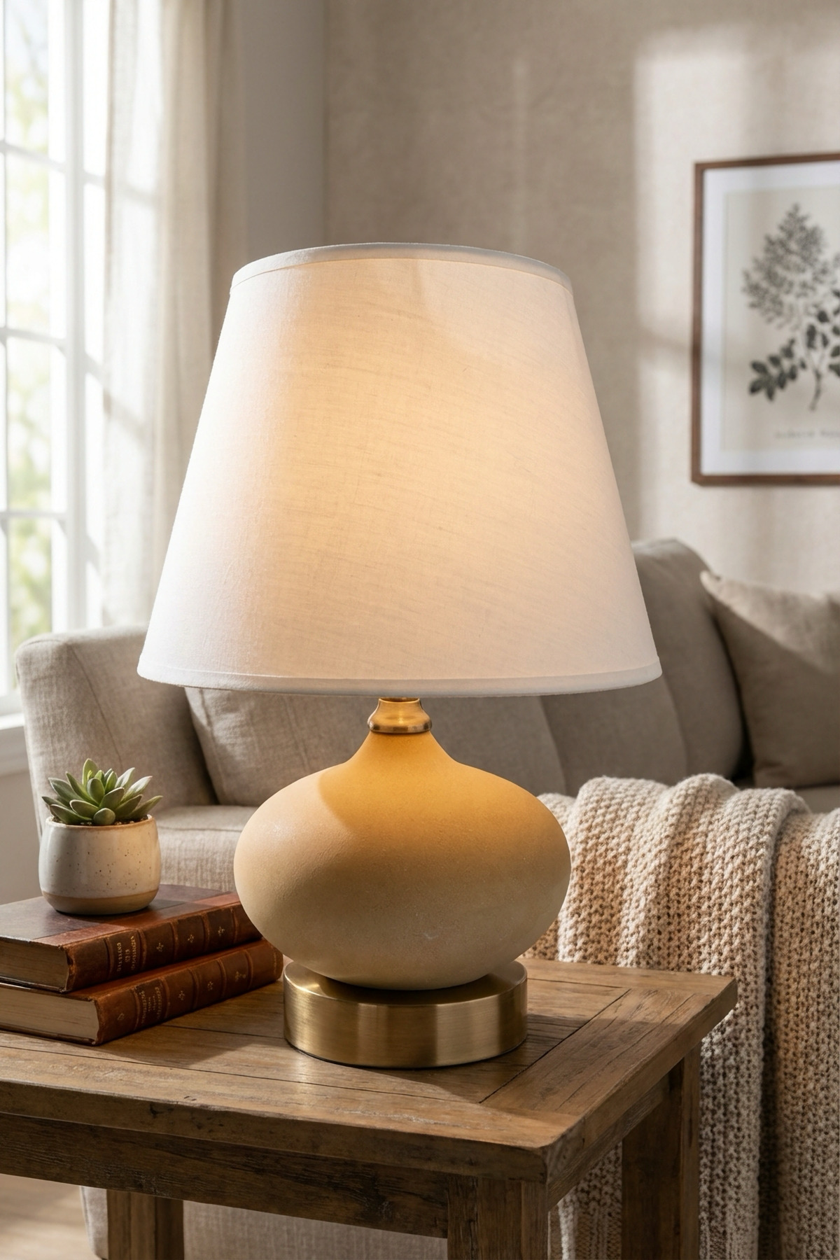 Artemis Taş Dokulu Krem-Krem Seramik Abajur