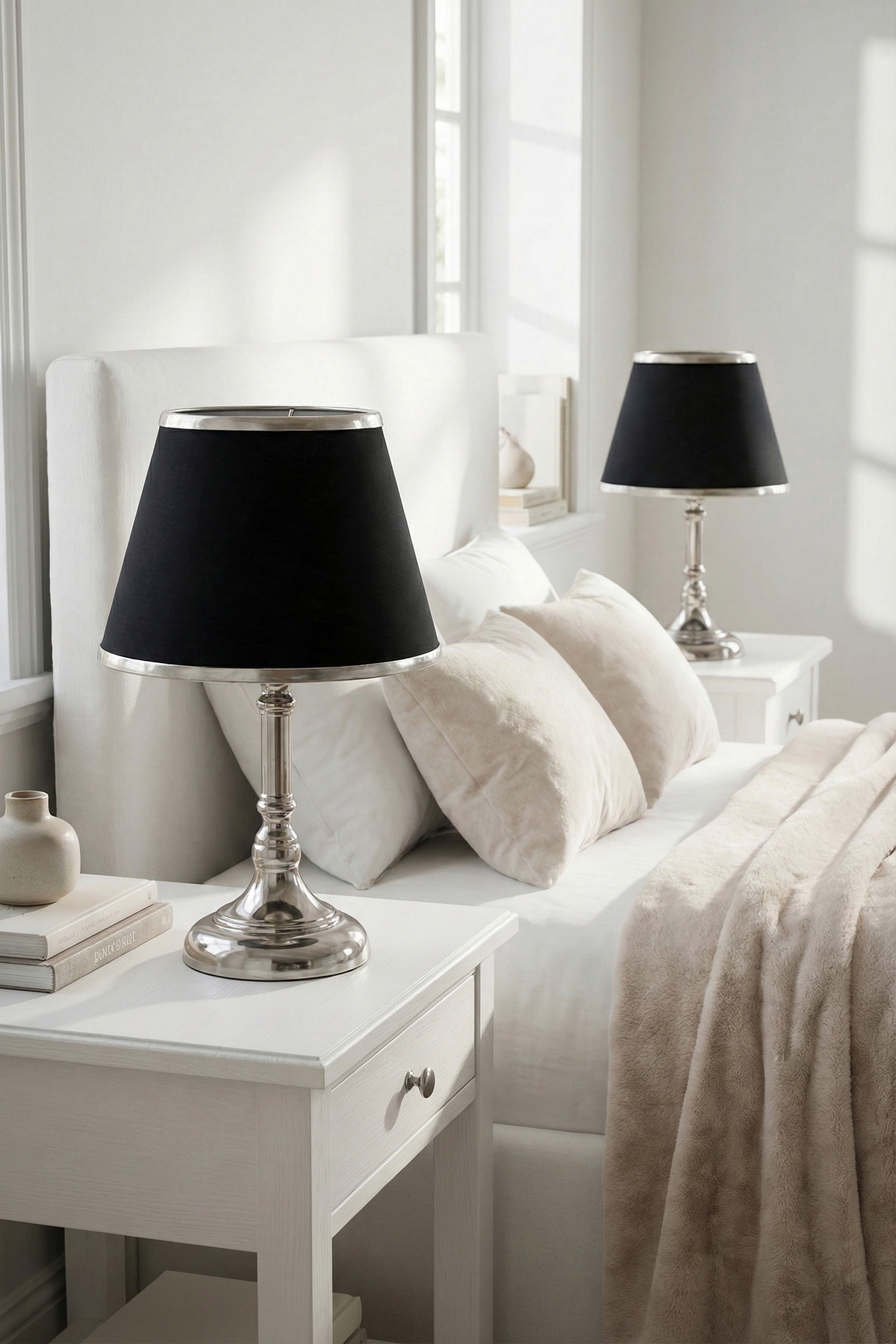 Emerfo Çift Gümüş-Gümüş Kenar Takım Abajur