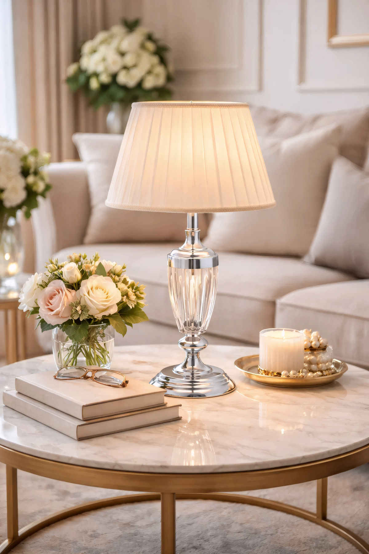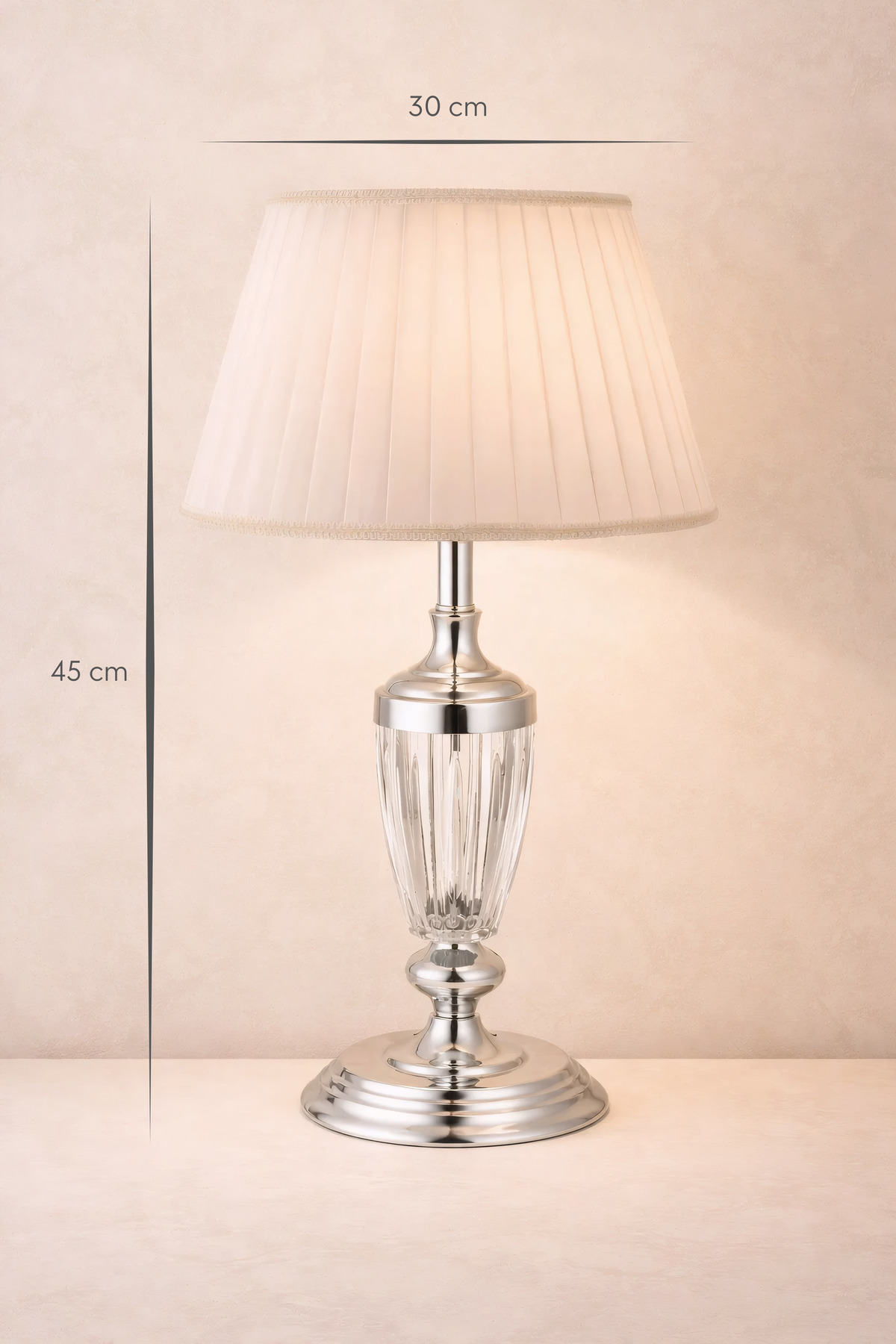 Şimdi evinize estetik bir dokunuş katmak ve modern aydınlatmanın keyfini çıkarmak için Jasmin Gümüş-Beyaz Pileli Abajur’u sepetinize ekleyin!