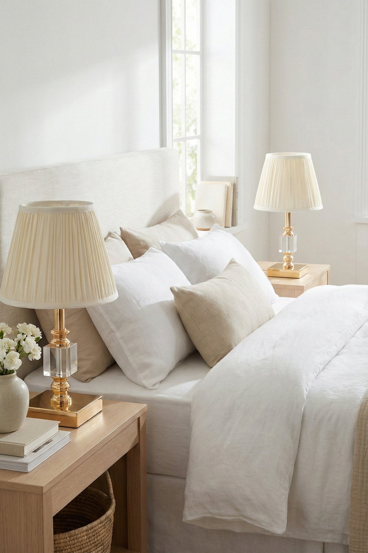 Julina Tek Küp Gold-Krem Klasik Çift Abajur
