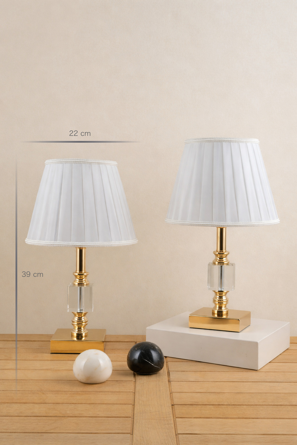 Julina Tek Küp Gold-Beyaz Pileli Çift Abajur