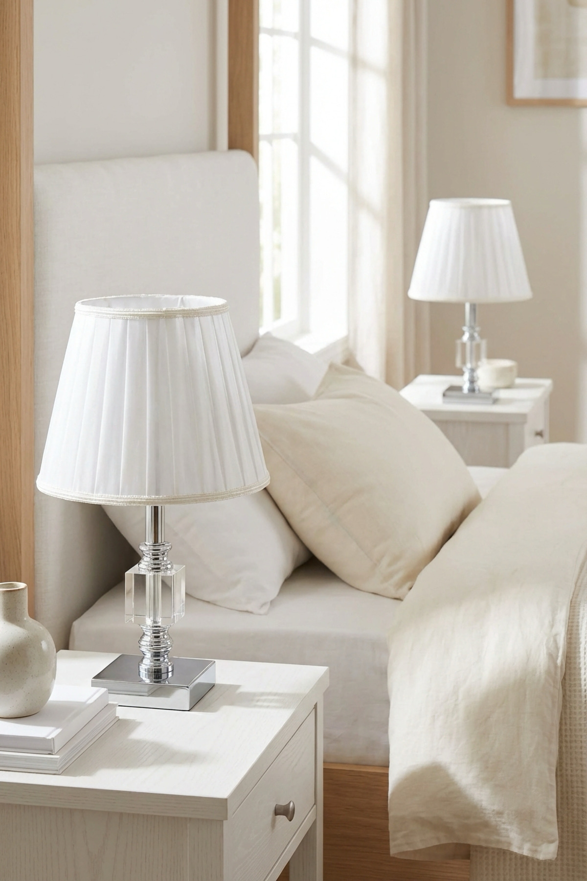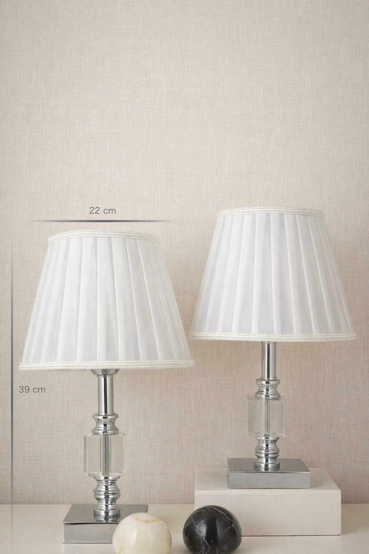 Julina Tek Küp Gümüş-Beyaz Pileli Çift Abajur
