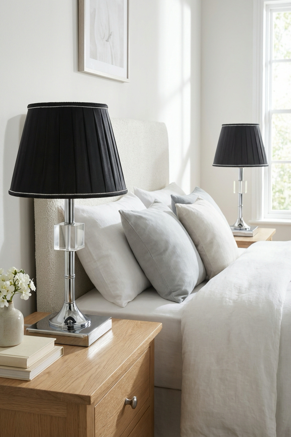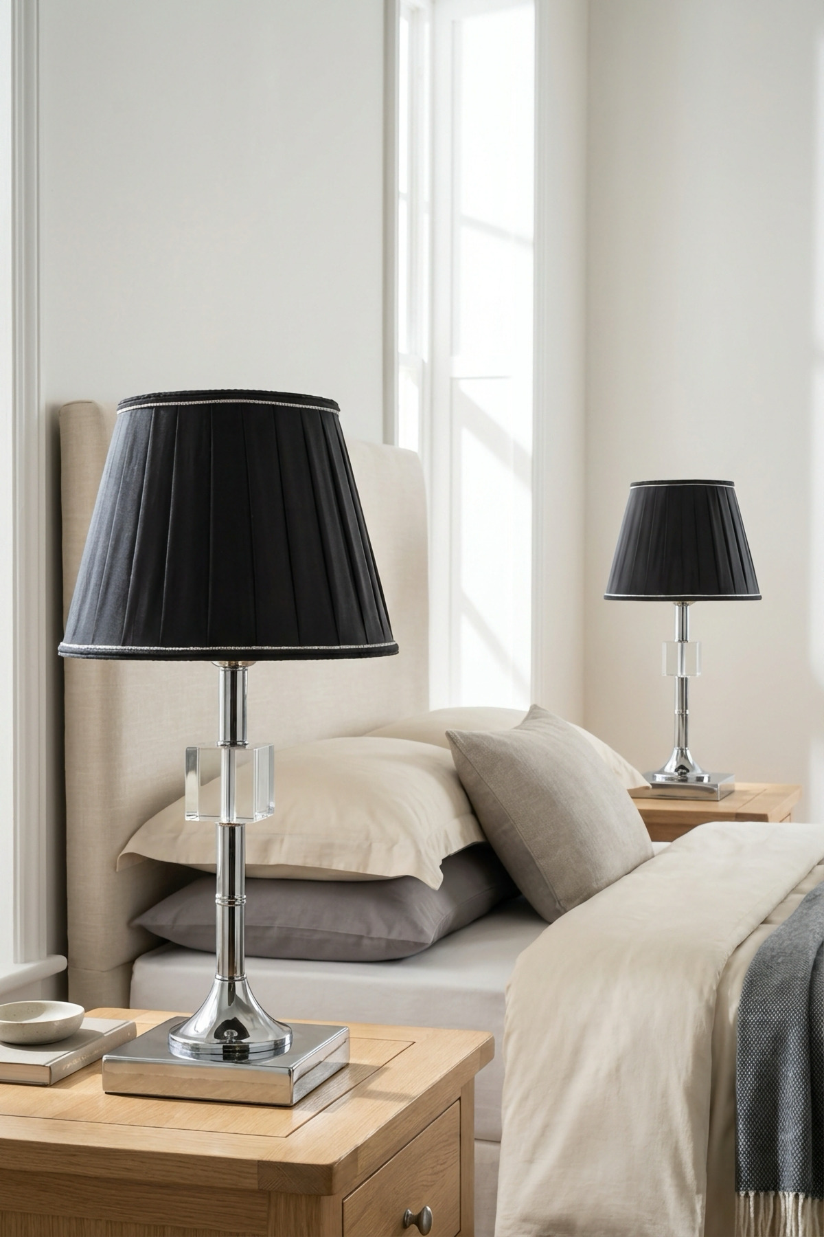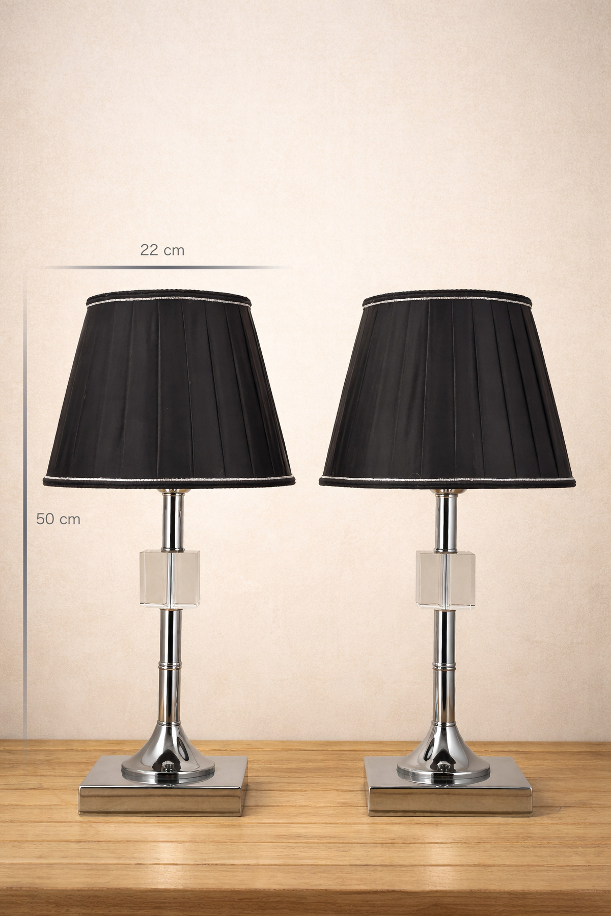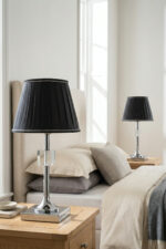 Kreatos Gümüş-Siyah Pileli Çift Abajur