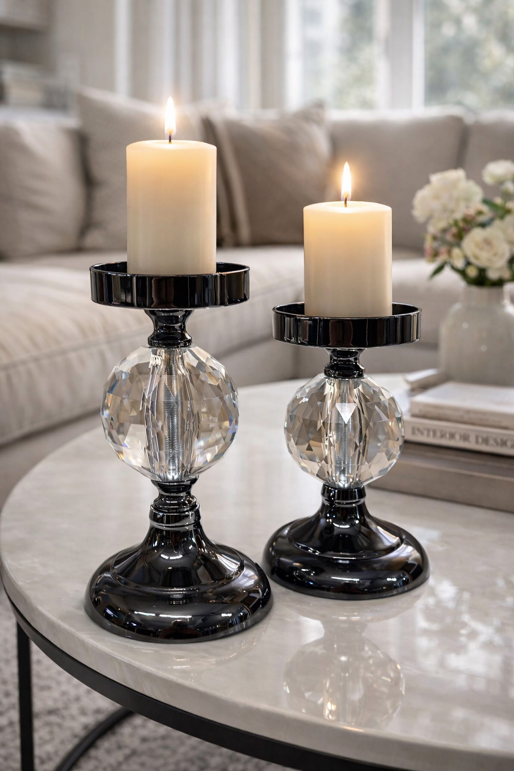 - Yüksek Yansıma Gücü: Platin kaplama yüzey ve kristal gövde, mum ışığını mükemmel şekilde yansıtarak odanıza büyüleyici bir parıltı yayar.