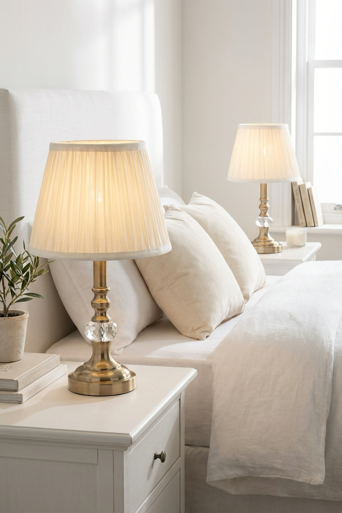 Narin Bronz- Klasik Açık Krem Çift Abajur