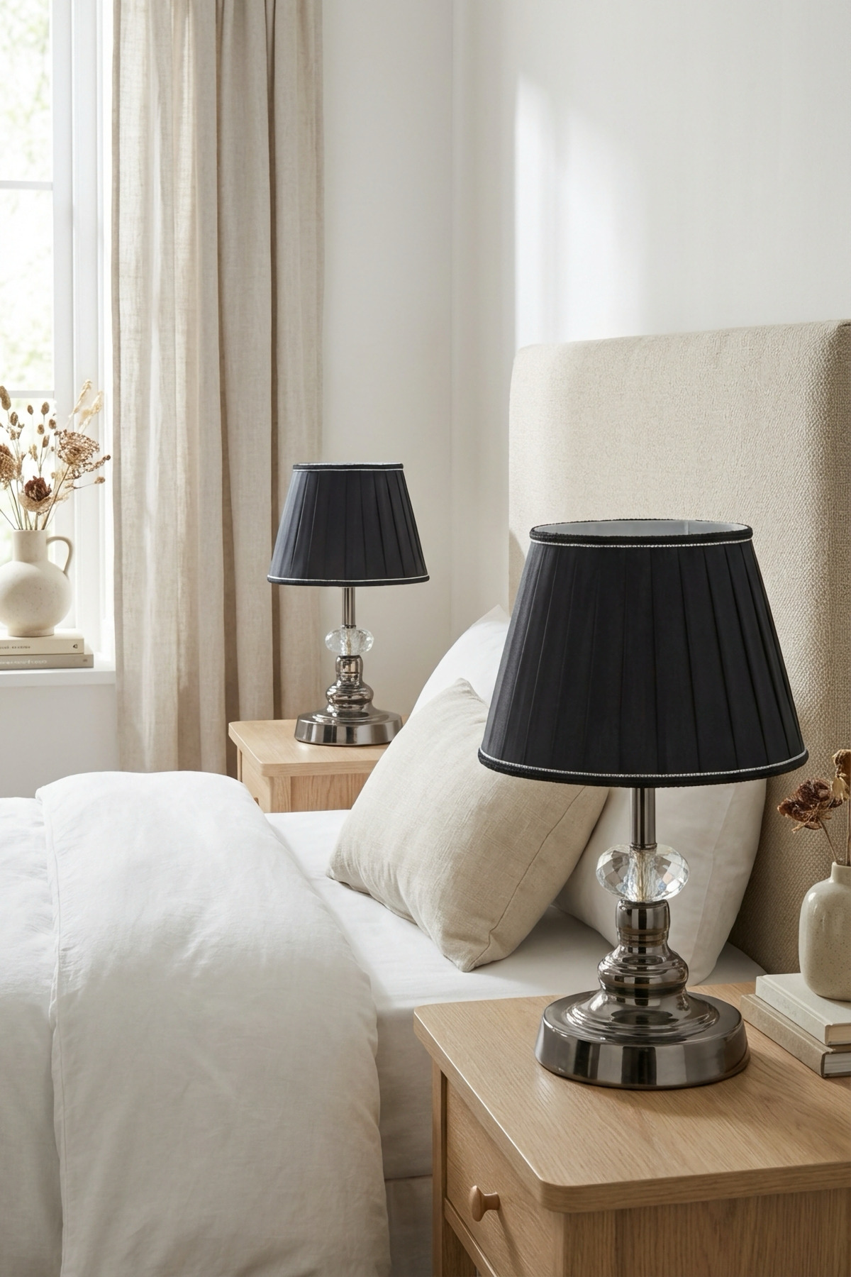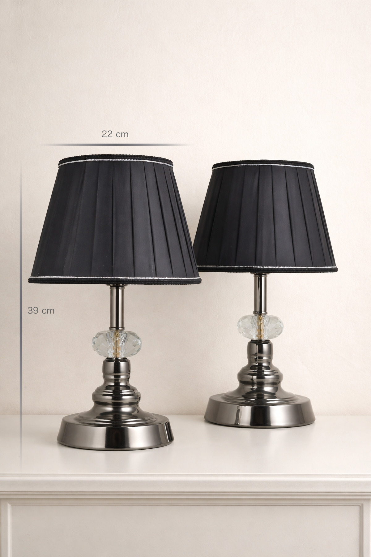 Mekanınızı yeniden tanımlayın, misafirlerinizi etkileyin ve her anın tadını çıkarın. Sergio Klasik Platin-Siyah Pileli Çift Abajur ile evinizde yeni bir başlangıca adım atın. Hemen şimdi sepetinize ekleyin ve evinizin atmosferini eşsiz bir zarafetle taçlandırın!