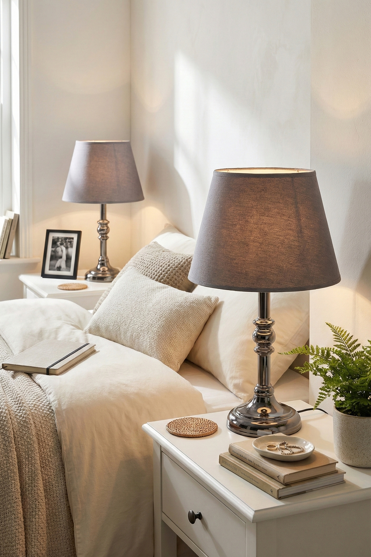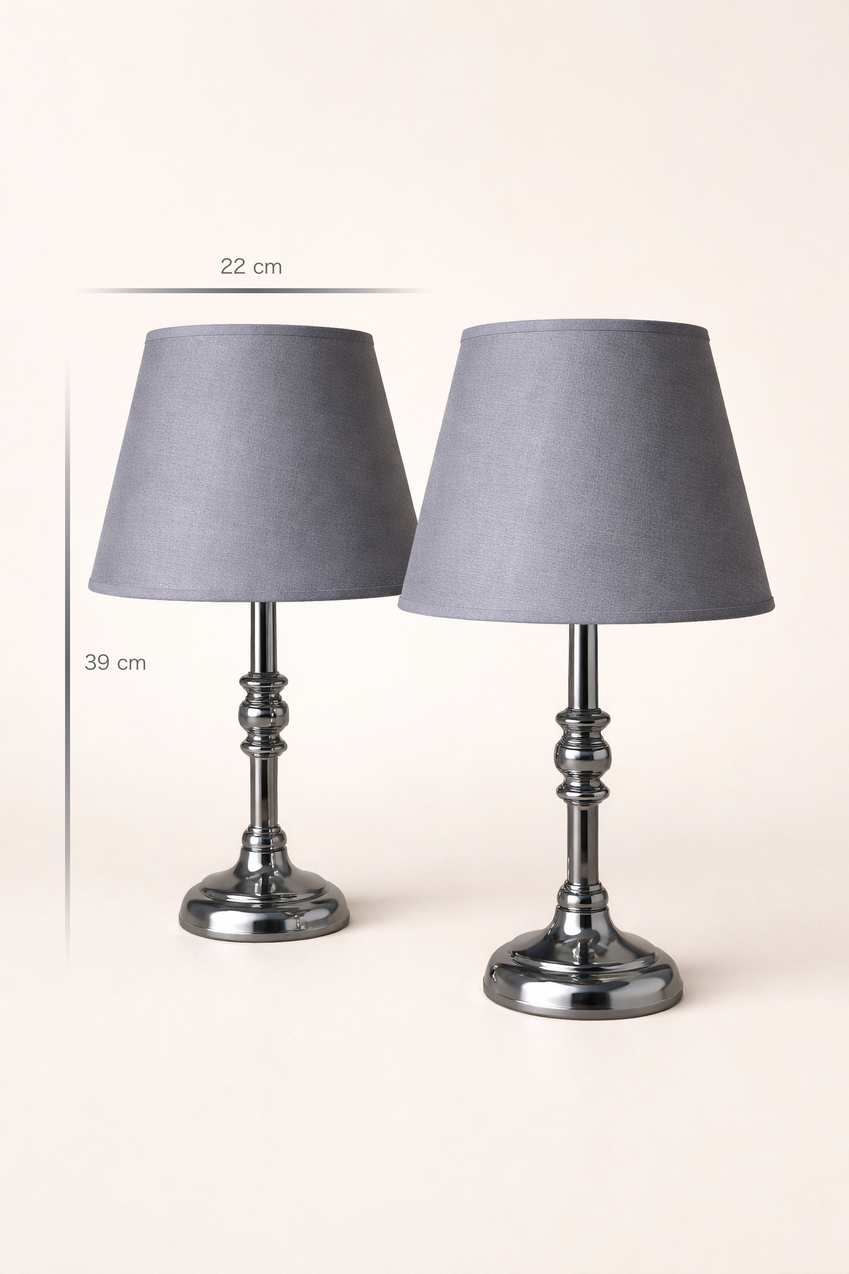 Sevilla Platin-Düz Gri Çift Abajur – AbajurAksesuar